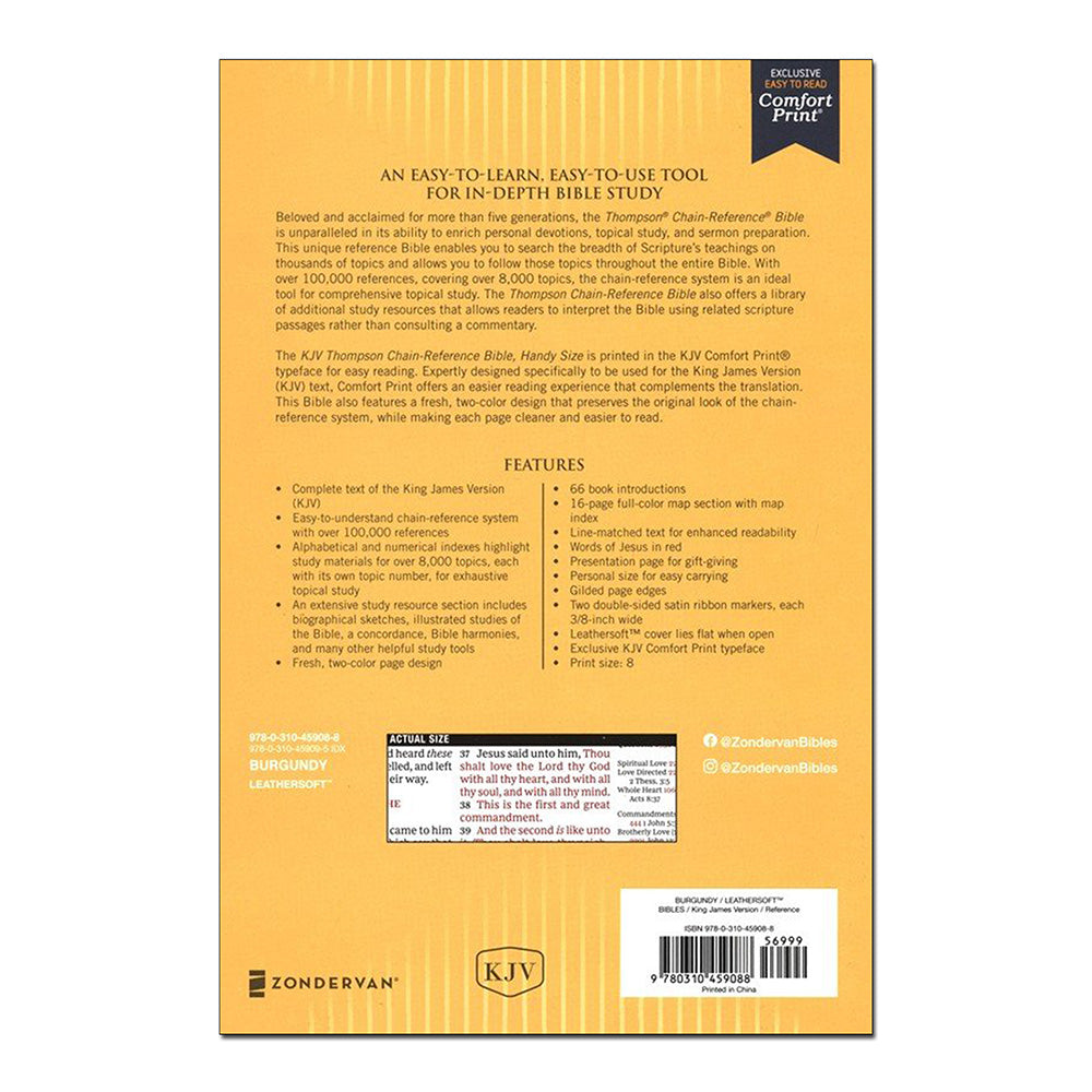 The KJV Thompson Chain-Reference Bible compels you to experience the harmony of God's Word with an optimal cross-reference system that has enriched believers' spiritual hearts and minds for over 100 years!